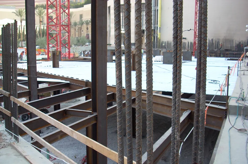 The Palazzo Condo Hotel Tower at The Venetian consists of an incredibly unique design featuring diagonal superkickers supporting 50 of the 57 stories. Each superkicker is 130´ in length and supports up to 48,000 kips of dead load while cantilevering over existing swimming pools. There is a maximum 1/2˝ plumb tolerance at any given point on the tower which shifts 30´ and then 60´ east. This project is a composite structure of box columns and wide flange columns. The first four floors are within the footing and entirely encased in 3´ thick sheer walls. Continuous pile footings run underneath the foundation footing at an impressive depth of 165´. There is a 3´ thick core wall which centers within the entire structure. The lateral bracing system is primarily eccentric and concentric brace frames as well as standard moment frames and a hybrid brace system nicknamed Texas Longform brace frames invented specifically for this project which resemble opposing Ys. SME provided value engineering with a cost savings of approximately $1,000,000 to the Owner.